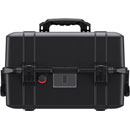 The incorporated double throw latches are sturdy and secure and a rubber over-moulded handle makes for comfortable transportation. A facility to attach PELI 1506TSA padlocks is easily accessible for added security. The incorporated O-ring gasket ensures a watertight seal at depths of up to 1m for 30 minutes, and prevents dust ingress (damaged O-rings can easily be replaced). The built-in pressure purge valve allows for quick equalisation after changes in altitude or temperature.