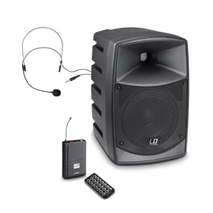 LD Systems’ range of portable, battery powered are supplied with either handheld or headworn wireless transmitter and integrated wireless receiver. This range include MP3, WAV and WMA playback via wired connection, Bluetooth, USB media, or inserted SD card.
