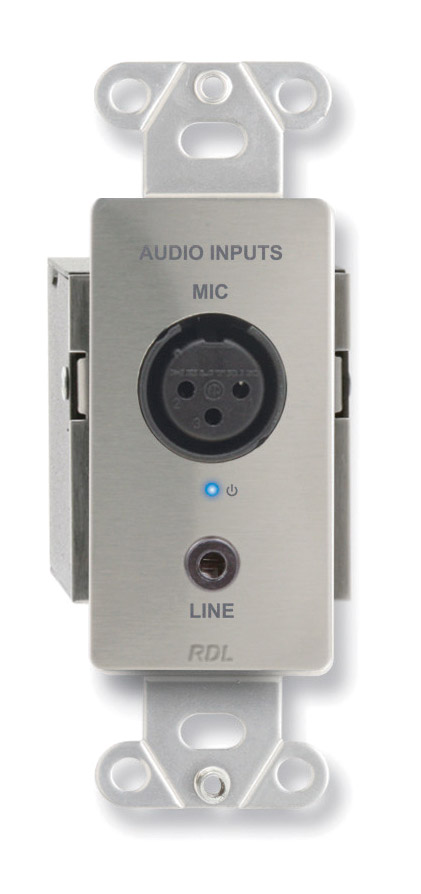 Available in white, black, or stainless steel finishes, this active single pair sender has a 3-pin XLR input and signal/power pass through via RJ45 sockets. A single blue LED on the front panel signifies power on. A switch on the rear facing panel allows for mic gain switching. The module provides IEC 24 V phantom and accepts input signals from both dynamic and condenser microphones. Powered remotely via RJ45 twisted pair, or locally via terminal block. Weight: 172g