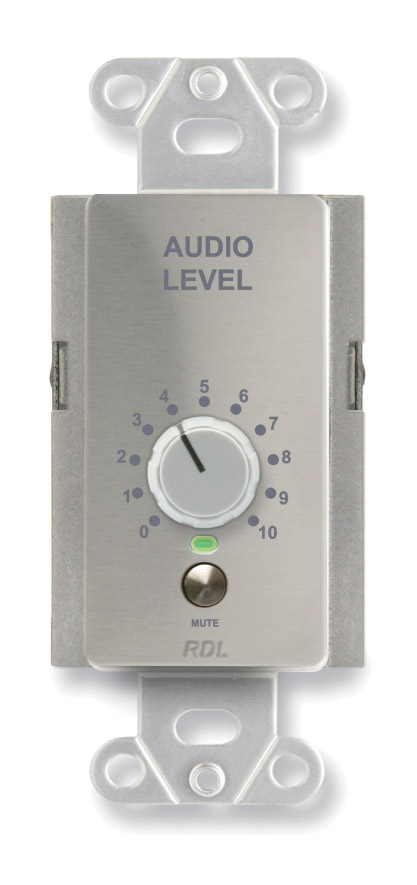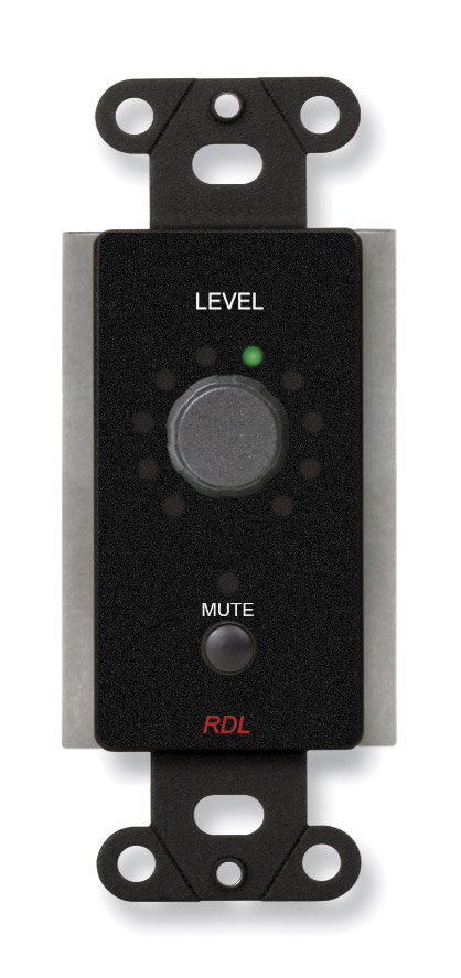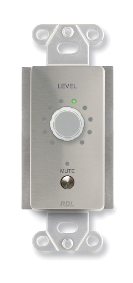 Similar in design and functionality to the RLC10, however has the addition of a channel mute button with associated LED. Available in white (D-RLC10M), black (DB-RLC10M), and stainless steel (DS-RLC10M). Power requirement: 24Vdc at 50mA, ground-weighted. Weight: 127g
