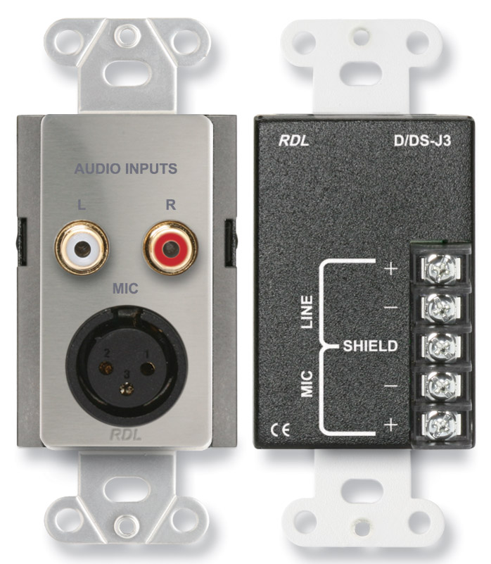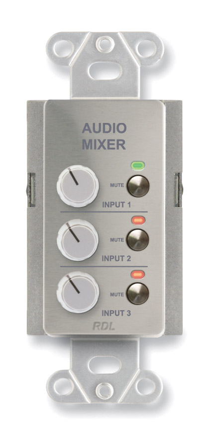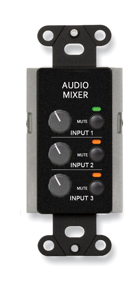 Available in white (D-RC3M), black (DB-RC3M), and stainless steel (DS-RC3M) finishes, this Decora style module allows the user to remotely control the level of three channels with 10kohm potentiometers and accompanying mute buttons. LEDs indicate the muting of the corresponding channel with green identifying on, and red off. Control output is on the rear of the module and via RJ45 connector for standard twisted pair interconnection between module and mixer. Weight: 0.16kg