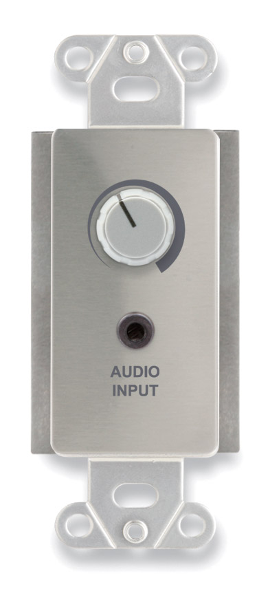A single Decora style unit designed to drive a 4ohm or 8ohm speaker at 6.5W or 3.5W respectively, and a separate headphone via 3.5mm jack output positioned on the front facing panel of the chassis. The input of the PA3 is via terminal block and can be unbalanced or balanced. All connectivity, with exception of headphone output, is located on the rear panel. Switches positioned on the side of the unit allows for amplifier muting when headphones are connected, and input sensitivity switching. There are no illuminated indicators on the front panel, and therefore suited to hotel rooms or other rooms where darkness is required. A rotary volume controller allows for output adjustment.