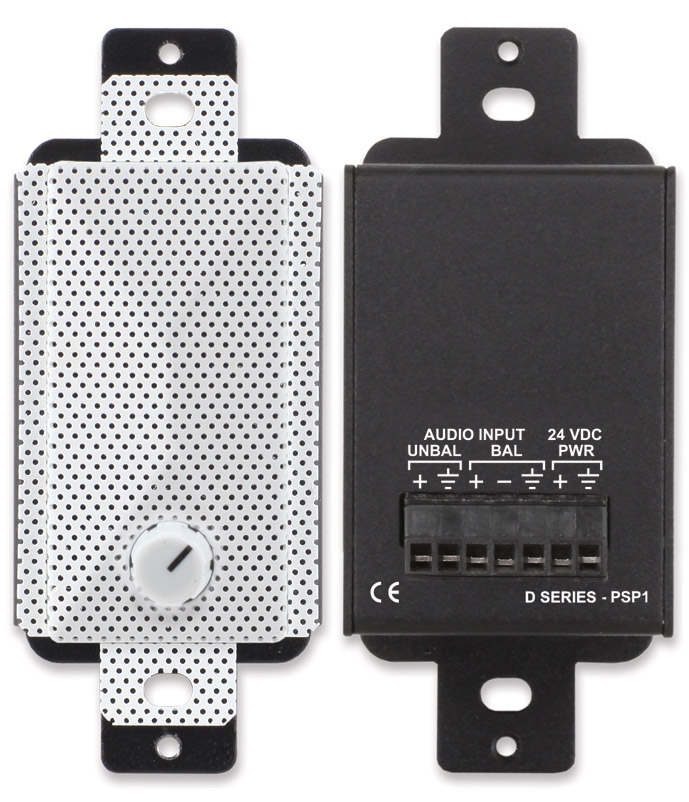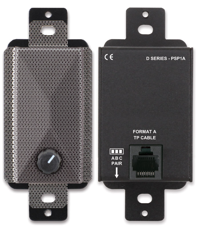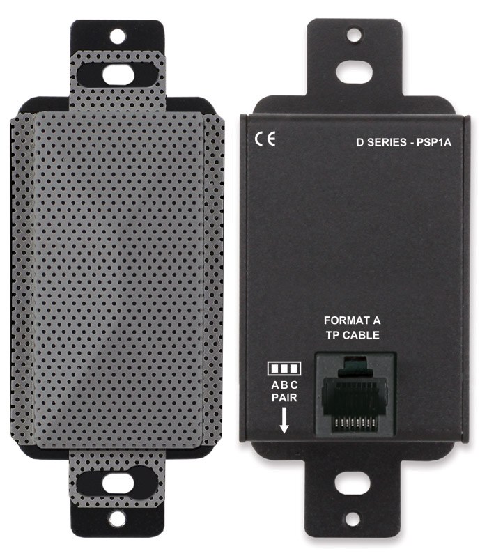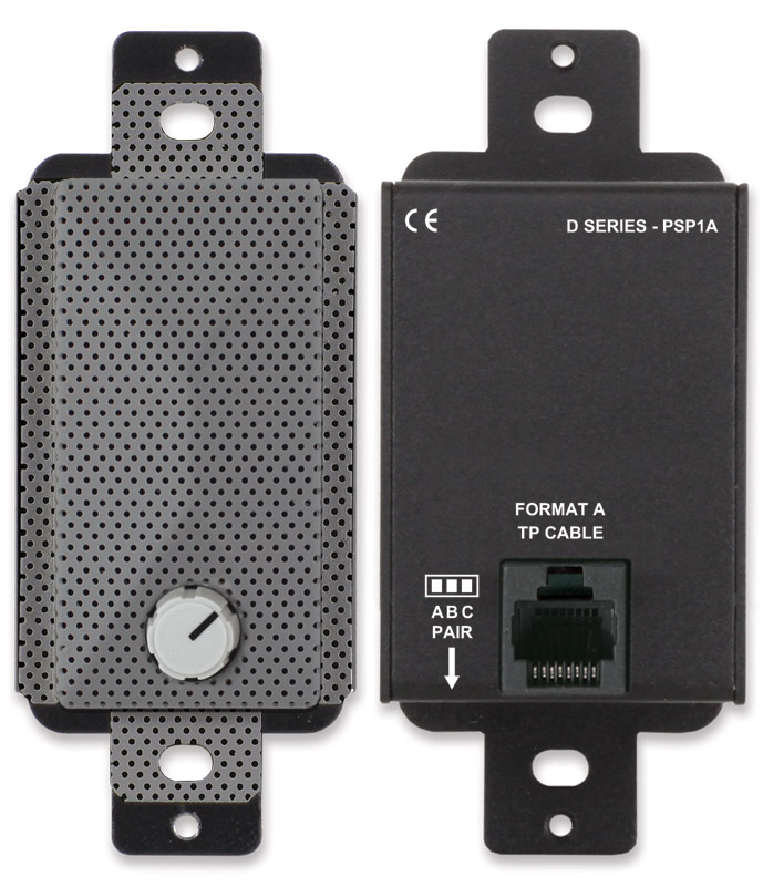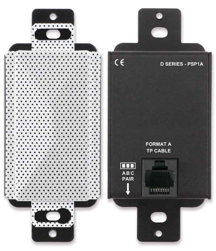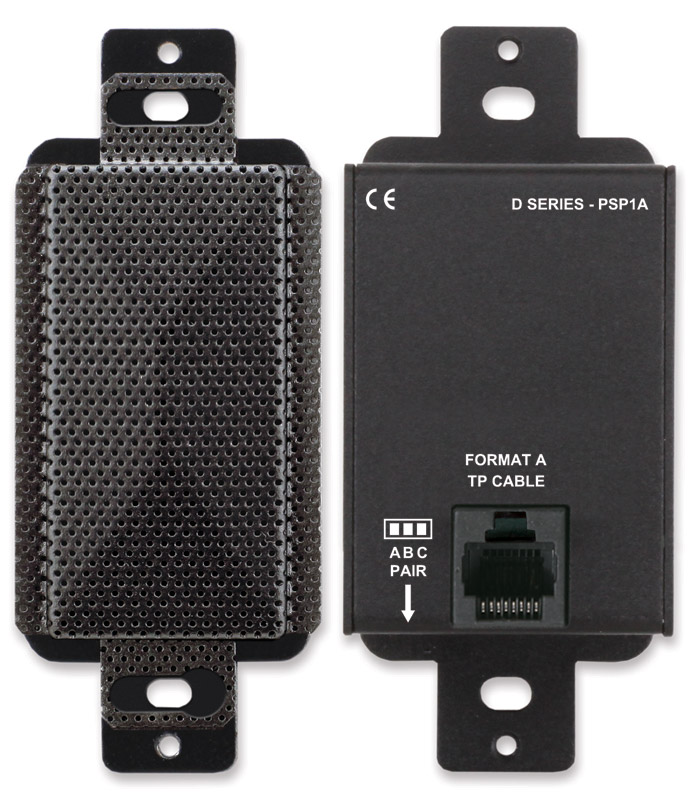 Available in white (D-TPSL1A), black (DB-TPSL1A), and stainless steel (DS-TPSL1A) finish, this active single-pair sender allows stereo input and combine to provide a mono output. A blue LED positioned on the front panel allows the user to identify power on status. remote powering is via twisted pair cable and RJ45 connection.