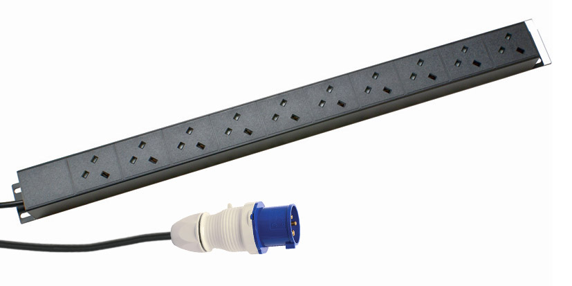 A range of UK-manufactured power distribution units for mounting in the rear of equipment racks, on workstations and consoles, or similar applications. All units have extruded aluminium housings, and are finished in black. They are available in three output connector angle formats and with 16 amp or 32 amp inlet cables and plugs.