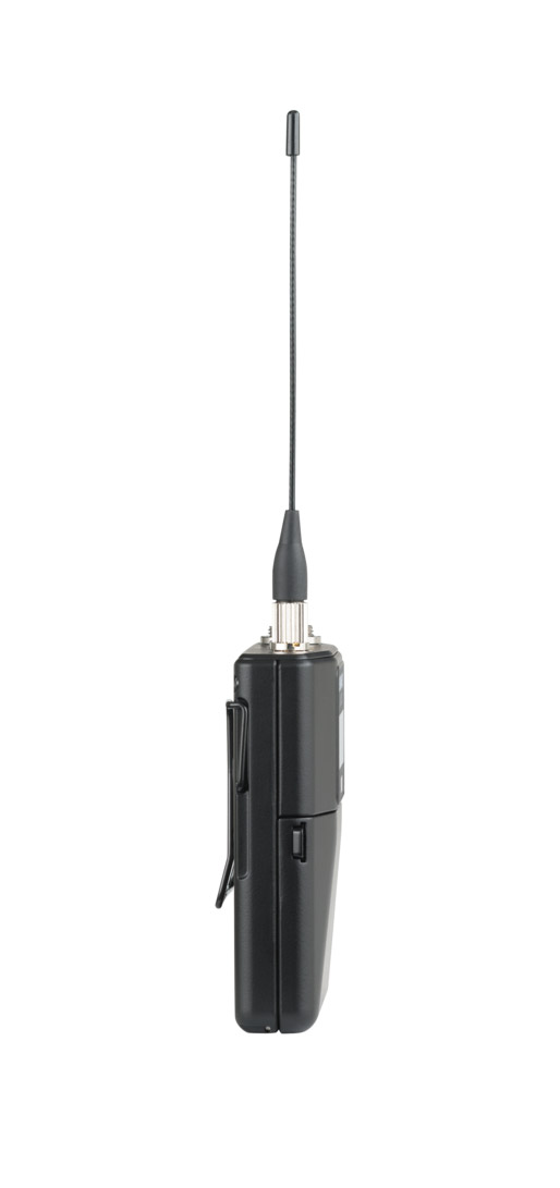 Available with TA4M connector (74-5251) or 3-pin LEMO connector (74-5252), ULXD1 is manufactured from metal and has many of the features the handheld ULXD2 transmitter offers. ULXD1 has a detachable quarter-wave antenna and TA4F/LEMO3 connector for use with optional WA302, WA304, WA310, cables, WA360 in-line audio mute switch, or compatible lavalier microphones. ULXD1 has charging contacts for docking and charging with optional SBC200-UK or SBC800-UK battery charger, and can be powered using either 2x AA battery cells or a single SB900-B rechargeable lithium battery pack.