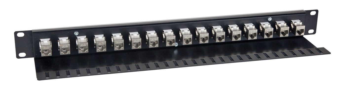 CANFORD CAT6 RJ45 PATCH PANEL, Economy, 1U, 1x16, Feedthrough, Screened, blackCANFORD CAT6 RJ45 PATCH PANEL, Economy, 1U, 1x16, Feedthrough, Screened, black