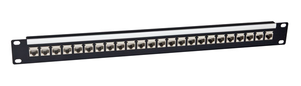 CANFORD CAT6 RJ45 PATCH PANEL, Economy, 1U, 1x24, Feedthrough, Screened, black