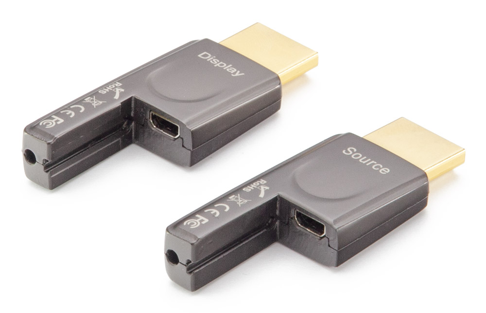 These locking, active, optical cables are intended for applications where longer cable-run lengths than those obtainable with standard copper HDMI cables are required. They are also useful where the cable needs to pass through environments with high electrical interference. They offer a considerably more elegant and cost-effective solution for long cable runs than Cat5E cable with converter box systems. Applications include professional AV systems interconnection, indoor and outdoor digital signage and kiosks, plus home theatre systems in larger properties.