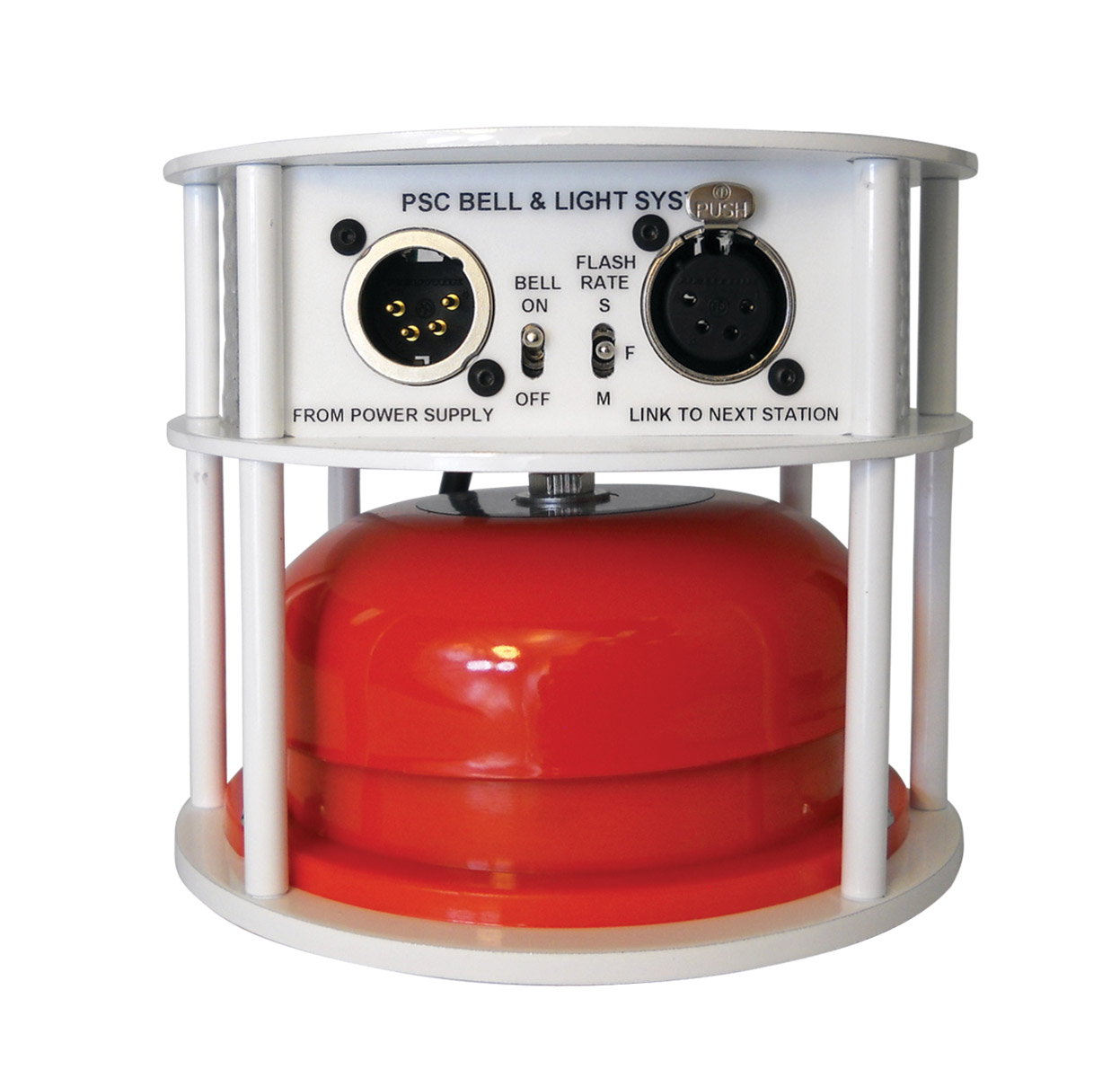 A dual-colour light and bell that offers 360-degree visibility and can be linked the to the FBL2PS power supply via 4-pin XLR cable. Switching on the I/O connector panel allows the user to turn the bell on or off, whilst a second switch allows the user to change the flash rate (when lit red) to slow, medium, or fast. The bell, light, and switching interface are protected by a roll cage.