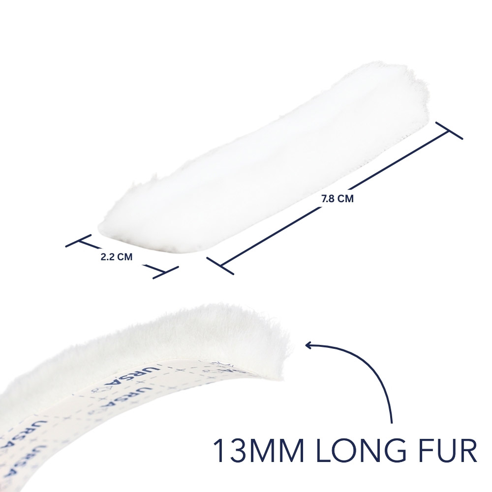 URSA Furry Strips are strips of 'super soft' fur with pre-applied, hypoallergenic sticky tape for adhesion to skin or clothing. The strips measure 22 x 78mm and are designed to reduce fabric noise by creating a soft buffer of fur between the layers.