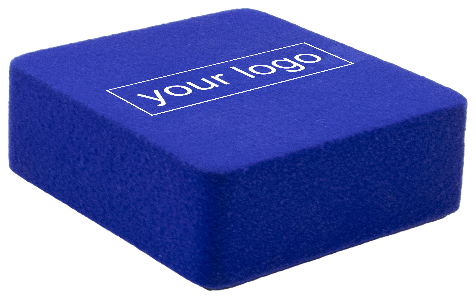 Designed to fit the top of a specified Apple iPhone, the flocked foam allows up to two logos for advertisement.