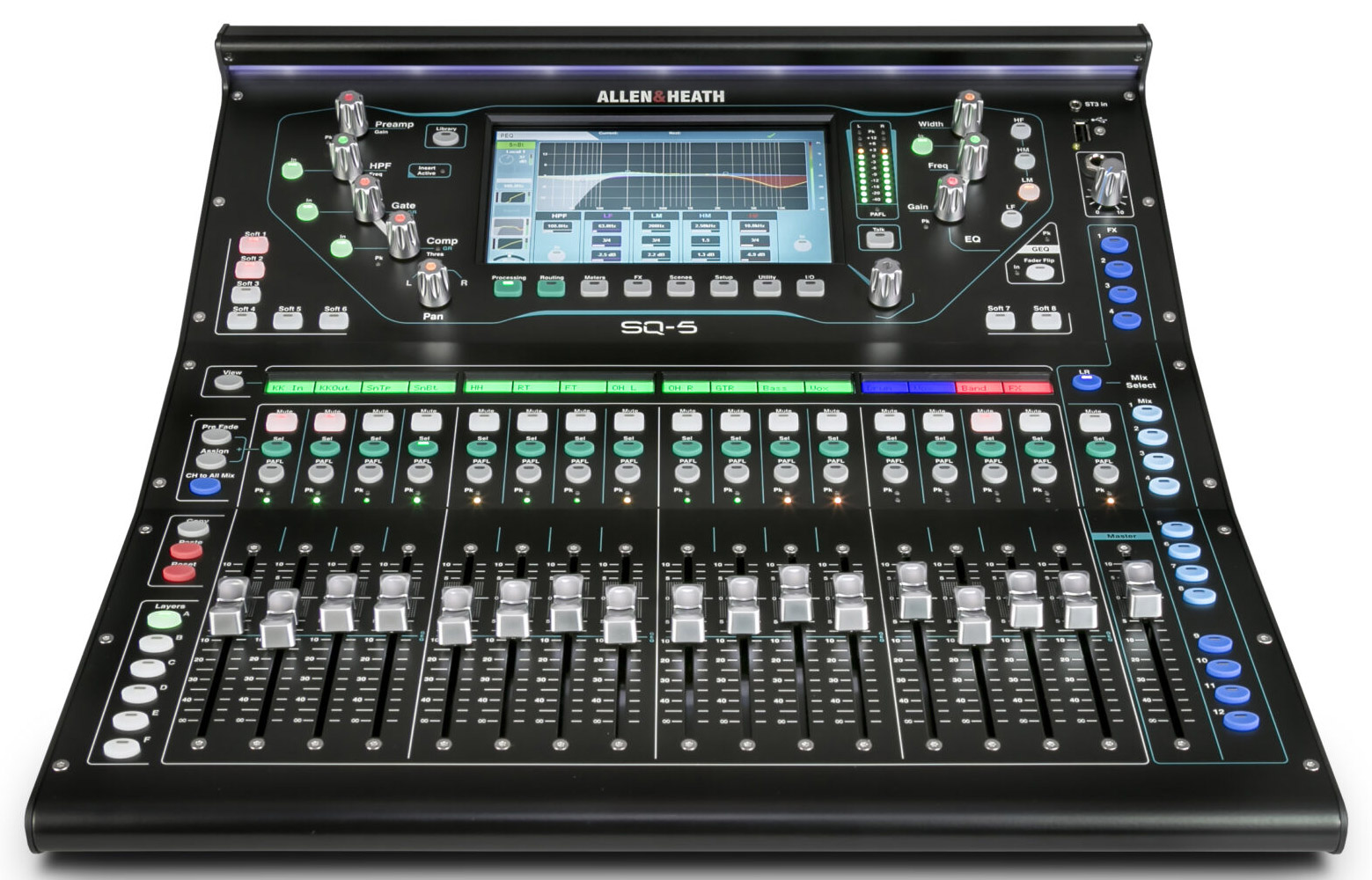 SQ-5 is the most compact, traditional console format, 48-channel digital mixer in the range. It has been designed for professionals who need the performance of the SQ series but in a portable format. SQ-5 features 16+1 motorized faders, 16+1 onboard preamps and 8x assignable SoftKeys, providing comprehensive control in a compact console that can be rack-mounted with the optional SQ-5-RK19 kit.