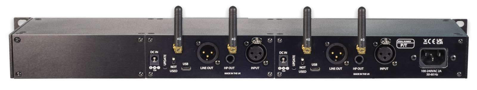 The rear panel has an XLR connector for the balanced, analogue, audio input at a line-level of 0dBu. There is also an XLR for the analogue, balanced, output which has a maximum level of +13dBu. The aerial connector is an SMA type. An IEC inlet accepts power: 100V - 240V AC. RF power output: 2W. Dimensions: 482 x 44 x 258 (w x h x d)mm, 1U rack mounting. Weight: 1.74kg, as supplied, with one phone.