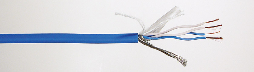 The star-quad design for microphone cables, where 4 conductors are used in pairs, with a short lay length, to cancel out the effects of external electromagnetic noise, is well known in demanding applications such as TV, video and theatre where thyristor lighting control systems are in use. The cables are, of course, also suitable for line level signals. The cables are extremely flexible, using fine stranded copper cores and soft PVC jacketing, and handling noise is minimised by the use of cotton fillers. An irradiated polyethylene core insulation provides a low capacitance dielectric, and its high temperature resistance minimises run-back during soldering.