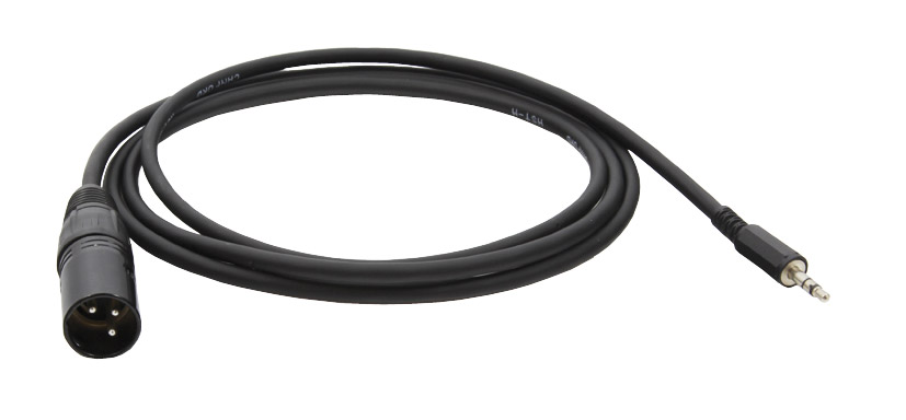 Black XLR 3-pin male for mixer or other device input and 3.5mm 3-pole, straight jack plug for the outputs commonly found on small portable audio recorders, iPods, phones etc. Also available with locking 3.5mm jack plug for use with radiomic and IEM receivers.