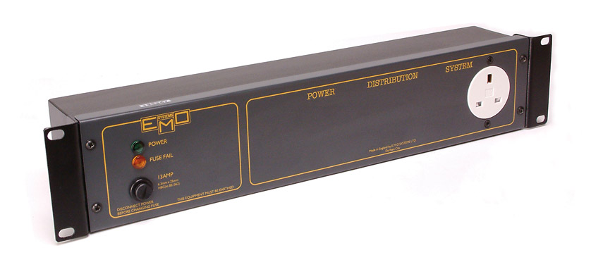 A range of power distribution panels for 19” rack mounting. Suitable for both fixed and mobile installations. The system allows all rack mounted equipment to be fitted with a standard BS1363 13A, IEC 10 amp type E or Schuko connector, so that installation and removal of equipment is easy and safe. The availability of front mounted sockets allows standard connectors also to be used on portable external equipment. In installations where a large number of outlets are required, the initial unit can supply power to slave units through the outlets on its rear panel. If a detachable power input lead is required, see EMO POWER DISTRIBUTION PANELS. IEC jumper cables also available – see index.