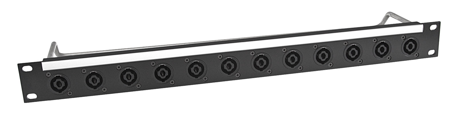 A range of 1U Speakon termination panels supplied fully populated with Neutrik ‘D’ series Speakon loudspeaker connectors. Available with 8 or 12 connectors fitted as standard.