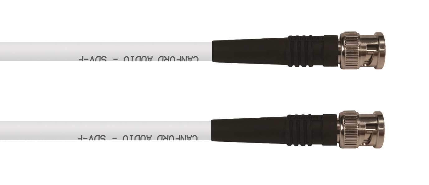 Prewired cables, ready for use. Suitable for HDTV, digital and analogue-video, and digital audio, using Canford SDV-F flexible low-loss digital video cable and 3G HD BNC crimp connectors. Two different styles are available, COAX BNC connectors fitted with black strain-relief bushes or Neutrik BNC rear-twist connectors.