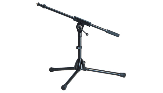 Extra low-level microphone stand with telescopic boom range of 580-720mm. Height range: 250-300mm. Weight: 1.7kg. Black finish.