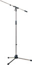 Extra low-level stand with 'very short and heavy' folding legs and two-piece boom. Boom arm clamping is via T-bar locking screw. Stem height: 280mm. Boom range: 425-725mm. Weight: 2.98kg. Black finish.