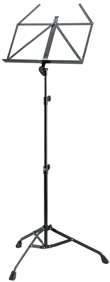Available in black (53-901) or nickel (53-900) finish, this steel manufactured music stand is a popular choice due to it's stability and construction. Black clamping elements protect the finish and ensure comfortable and user friendly height adjustment from 675mm to 1475mm. The legs features larger end caps and base diameter of 750mm for additional stability. The stand measures 670mm when folded. Weight: 2.5kg.