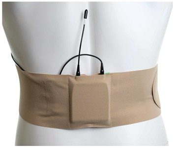 These 'ultra-slim, breathable' straps are manufactured from 1mm thick bonded fabric that allows the hook gripper to be fastened at any point. This ensures the user can always position and fasten to a degree which is comfortable to them. Available with small or large integrated pouches which measure 8.9 x 7.8cm, or 10 x 8cm respectively, wireless transmitter packs from brands including Shure, Sennheiser, and Sony are compatible (see table below). Along with the pouch that holds the transmitter or receiver, a second, open-ended pouch allows for storage of surplus cable.