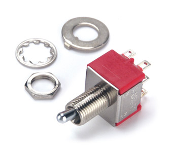 C&K manufacture an extremely large number of switches. The 7000 series of miniature toggle switches comes in a variety of versions, one being the "M" toggle variety. This has a short, recessed lever, that withstands knocks and is extremely resistant to damage. The "21" toggle variety has a broad black plastic lever, with a rectangular mounting profile. The "J2" type is for PCB mounting behind a panel, without bezel.