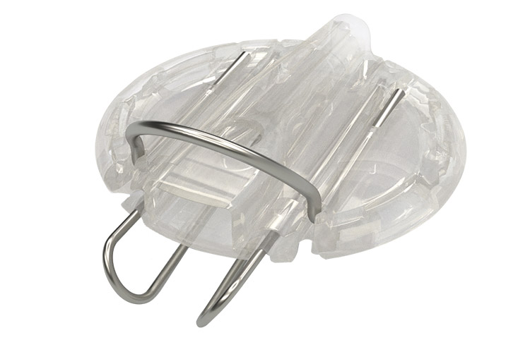 This double clip is for mounting two 4080 microphones on a speaker - often implemented for redundancy. The rubber shock mount on the 4080 Miniature Cardioid Microphone can easily be dismounted from its enclosed standard clip (DMM0014) and attached to one of the ball-shaped fixation spots on the DMM0015 double clip. To increase the system's immunity to cable noise, the clip features a short cable trail for securing the microphone cable.