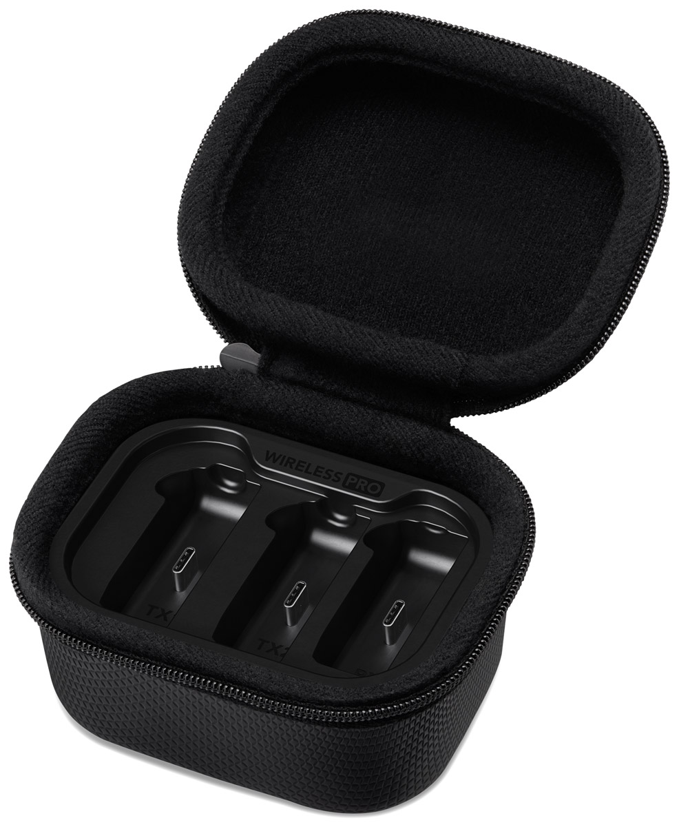 Included accessories: 2x Wireless Pro transmitters, 1x Wireless Pro receiver, 1x Charge Case PRO, 1x SC2 ​3.5mm TRS to TRS cable, 1× SC21 USB-C to Lightning cable, 1x SC22 USB-C to C cable, 1x USB-C to C superspeed cable, 2x MagClip GO, 3x Furry, 2x Lavalier II ​microphones, 2x Pop Filter for lavalier, 2x Mic Clip lavalier, 2x Mini Furry lavalier, 1x Accessory Case, 1x Lens Cloth.