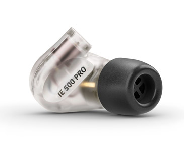 Like IE 100 Pro, IE 400 Pro earphones have a dynamic transducer, however they an extended frequency response of 6Hz to 19kHz, and a sound pressure level of 123dB. IE 400 Pro are available in clear or smoky black variants. A detachable 1.3m cable terminates with 3.5mm stereo jack connector, and a 6.3mm jack adapter is supplied.