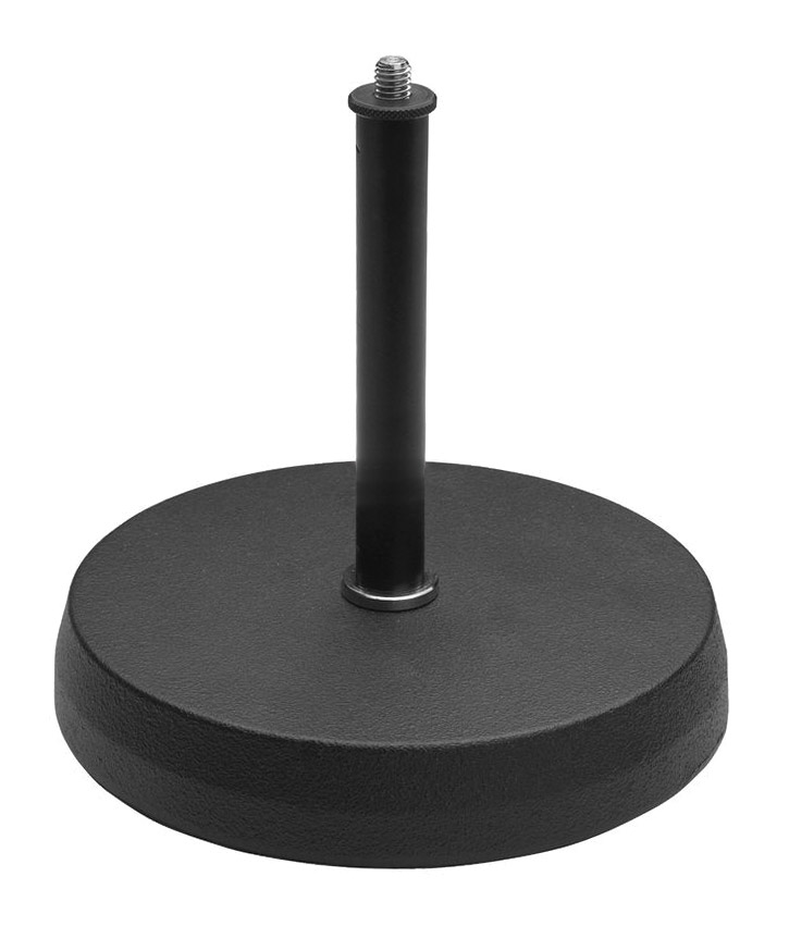 A short, 170mm tall table stand in black. A 17mm (diameter) cast iron base has an anti-vibration rubber ring to prevent unwanted bass transfer. Genelec suggest the stand is used in conjunction with compatible adapter plate for preferred loudspeaker. This stand is not suitable for use with 8331 loudspeaker. Weight: 2.62kg.