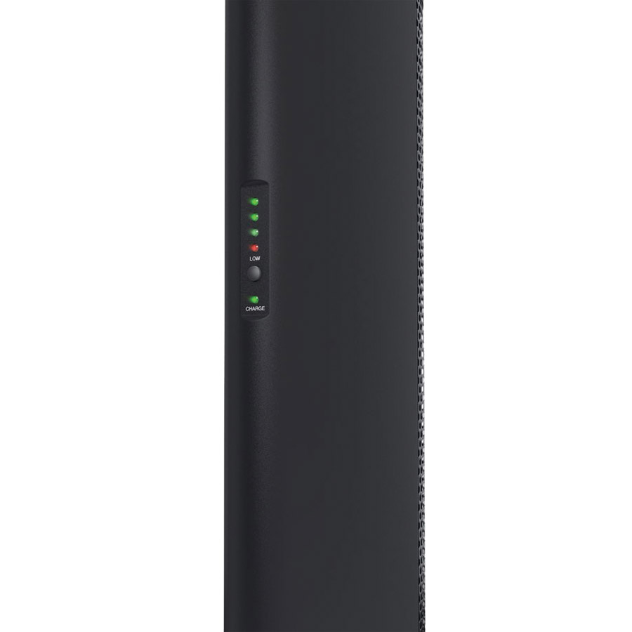 Available in black or white, the MAUI 5 GO comprises of an 8-inch subwoofer, a slot-in column with an LG Lithium-ion battery, a slot-in column shell for extending the height, and a slot-in mid/high frequency column with four 3-inch drivers. The system can be used without the slot-in column shell if the additional height isn’t required, however both battery and mid/high columns must be used to complete the system. The battery column has a green LED that illuminates when charging, whilst a 4-stage LED tree shows the battery status when a battery check button is depressed. The unit is charged when attached to the subwoofer and can be ran whilst charging. A charging dock, 76-0913, can be purchased as an optional accessory. Battery capacity of 30hrs at 98dB, 10hrs at 104dB, or 6hrs at 120dB.