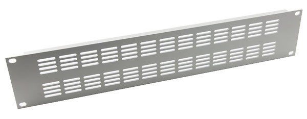Rigid steel rack panels punched with long horizontal or vertical slots. Available in 1U, 2U and 3U sizes, black or grey painted finish.