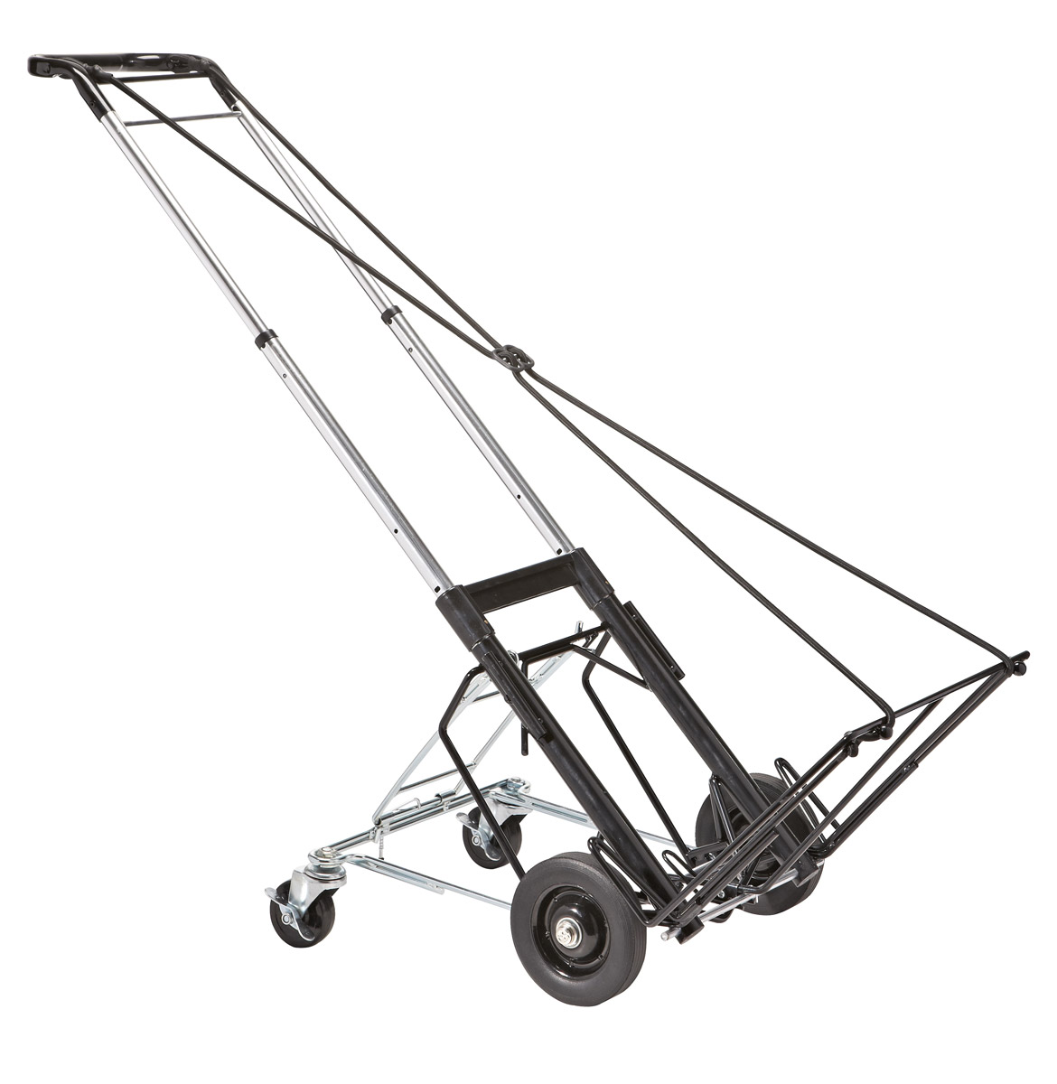 A range of modular all purpose heavy duty trolleys, ideal for handling heavy equipment (e.g. ENG/EFP and OB equipment). All versions telescope to airline stowage sizes and feature spring activated telescopic tubing with squeeze-release control, parallel stair glides, rubber safety capped tubes and adjustable securing cords with loops not hooks to minimise damage or injury. Highly recommended by Canford’s exhibition crew!