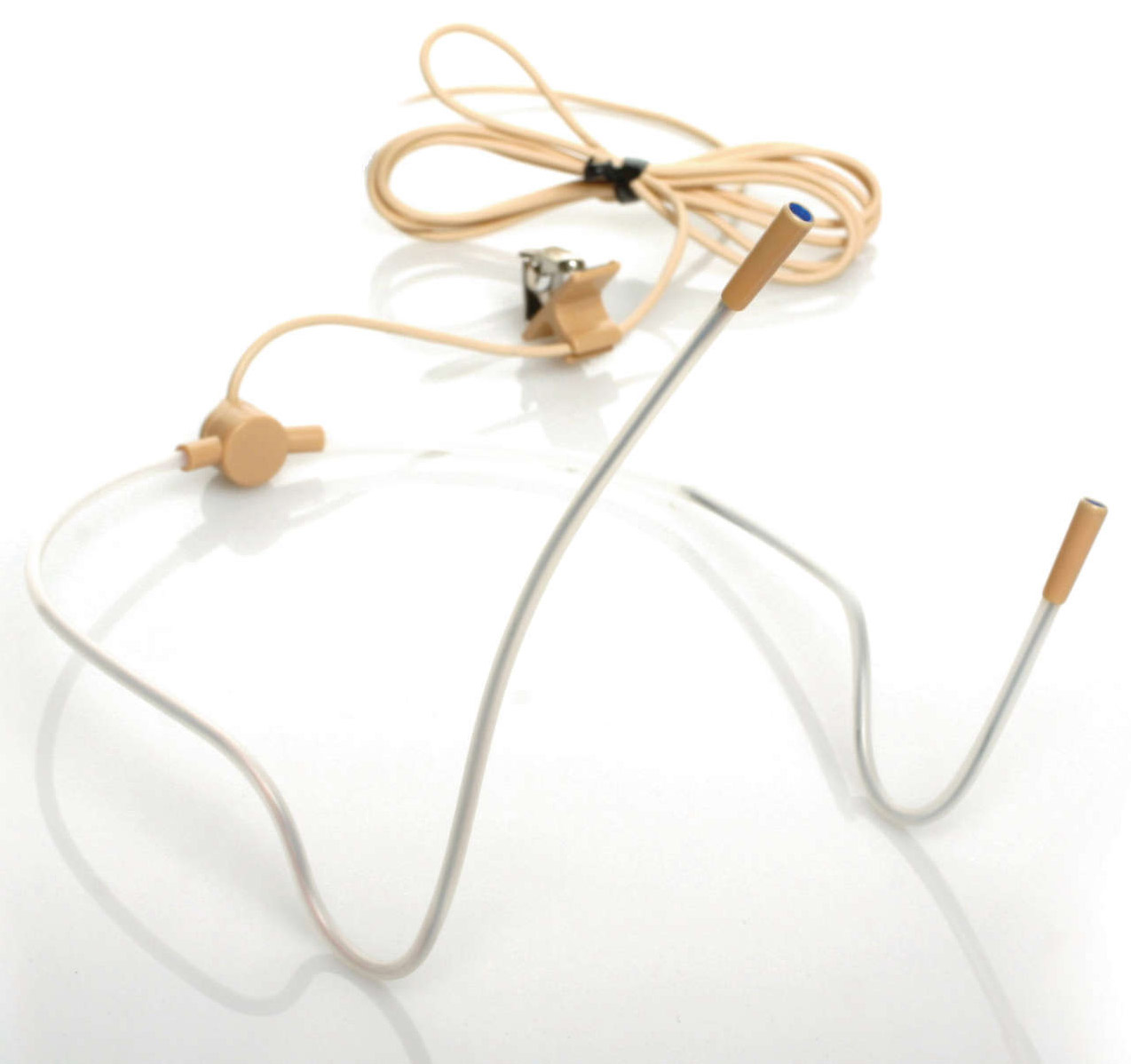 One of the smallest and lightest headband microphones available this is be worn around the head and may be hidden discreetly under the hair. The capsule, optimised for speech and vocals, is mounted on a boom that can be bent into shape for best positioning. A small membrane in the capsule housing protects the capsule from moisture, make-up and any other contaminents. This can be replaced cheaply and simply to preserve optimum performance. The headband is engineered from a hard-wearing nylon composite, selected to withstand the most robust use and yet adjustable to fit the head and ear shape of the user.