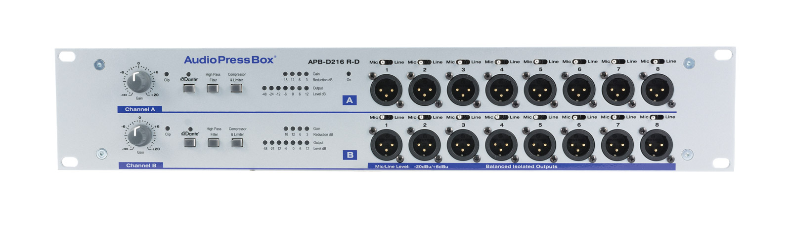 AudioPressBox APB-D216 R-DAUDIOPRESSBOX APB-D216 R-D PRESS SPLITTER Active, 2U, 2x line/Dante in, 16x mic/line outAUDIOPRESSBOX APB-D216 R-D PRESS SPLITTER Active, 2U, 2x line/Dante in, 16x mic/line outAUDIOPRESSBOX APB-D216 R-D PRESS SPLITTER Active, 2U, 2x line/Dante in, 16x mic/line outAUDIOPRESSBOX APB-D216 R-D PRESS SPLITTER Active, 2U, 2x line/Dante in, 16x mic/line out