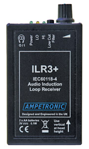 The same as the standard ILR3 Loop receiver, but with the addition of 2 LED indicators to show if signal strength is within the correct range as defined by IEC60118-4:2006.