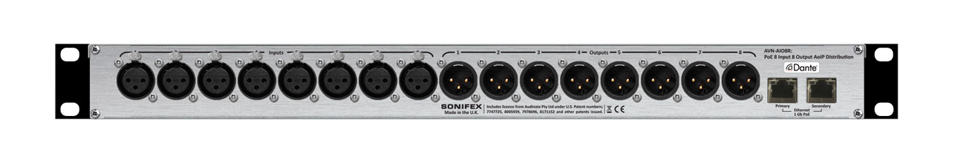 SONIFEX AVN-AIO8R DANTE AUDIO INTERFACE 8x analogue XLR in/out, dual Dante, 1USONIFEX AVN-AIO8R DANTE AUDIO INTERFACE 8x analogue XLR in/out, dual Dante, 1USONIFEX AVN-AIO8R DANTE AUDIO INTERFACE 8x analogue XLR in/out, dual Dante, 1U