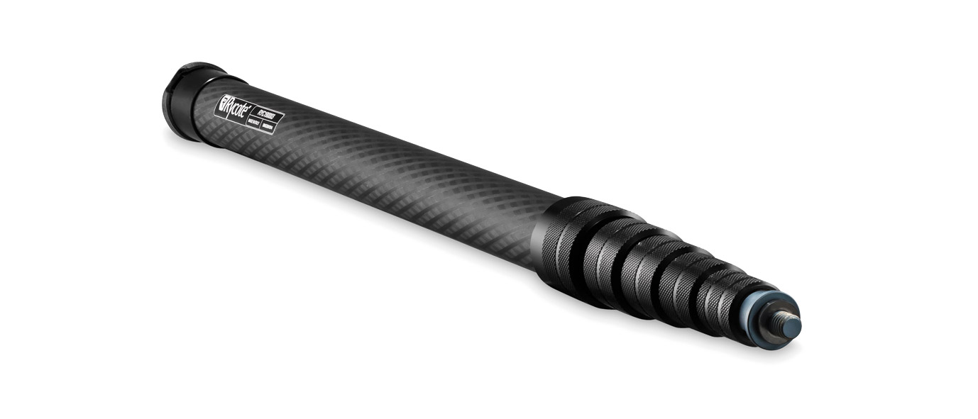Available in three sizes, small (190001), medium (190002), and large (190003), these microphone boom-poles have been designed to cater for payloads of up to 5kg whilst retaining 'balance' and mobility thanks to their carbon-fibre construction. The twist-lock system used allows the fastening or unfastening with a quarter-turn, with knurled finish aiding grip.