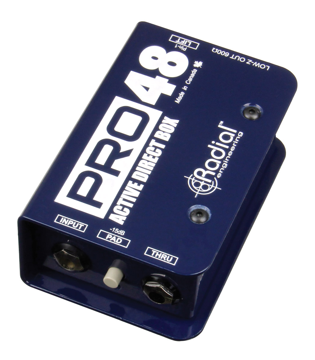 Radial Pro48 is a 48V phantom powered, active direct box designed specifically for higher output instruments like active basses and acoustics guitars. The DI box features an internal switching power supply that increases headroom and has the benefit of less distortion whilst yielding a smooth and linear response that extends from 20Hz to well above 100kHz.