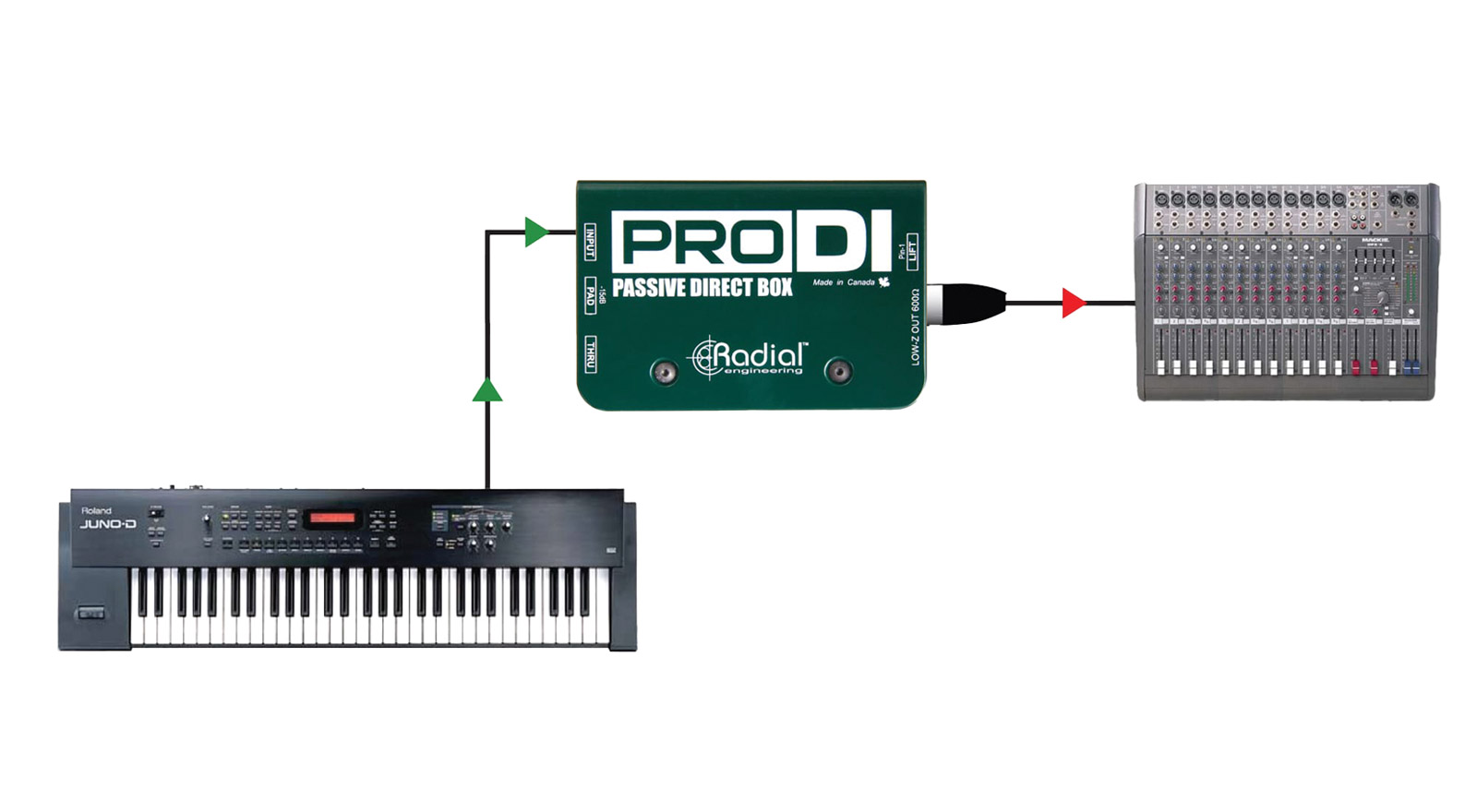 Radial ProDI is an ultra-compact passive direct box that has been specifically developed to allow regional sound companies and project studios to have a more affordable solution. ProDI features a custom-made transformer that is able to handle high levels without saturation. This high-performance transformer has a linear frequency response from 20Hz to 18kHz, making it a popular combination with electronic musical instruments, bass or acoustic guitar, and audio equipment. ProDI also features a -15dB pad for high output sources, and ground lift switch to troubleshoot noise from ground loops.