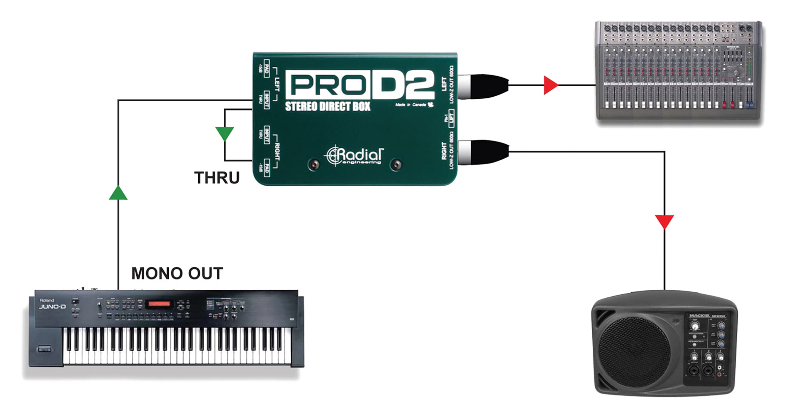 RADIAL PROAV2 DI BOX Passive, stereo, 6.35mm jack/phono inputs Artikelnummer: 20-0006