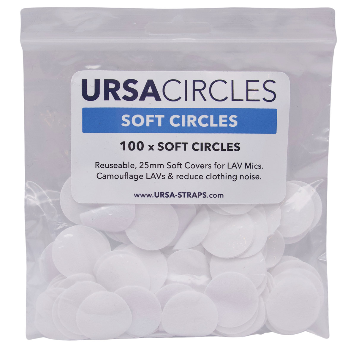 URSA Soft Circles are reusable covers for lavalier microphones, and with a soft finish. The covers provide protection against wind and rubbing noise. Each stretchy circle measures 25mm diameter and a variety of colour options allows for skin tone matching for camouflage. The Soft Circles can be adhered using URSA Sticky ZEROs, URSA Stick Circles, or URSA Very Stickies.