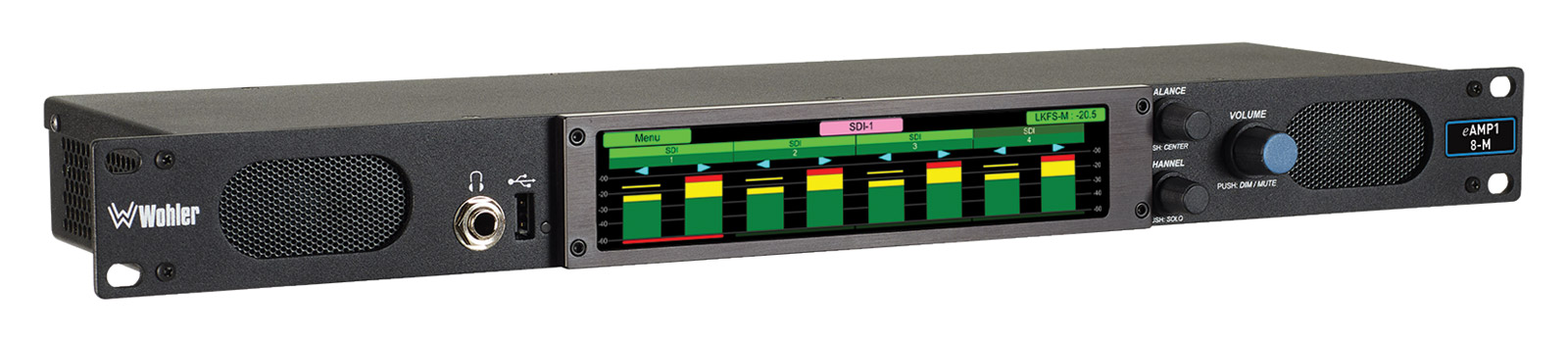 WOHLER IAM1-8 AUDIO MONITOR 8-channel, 3G-SDI/analogue, 5W RMS per side, 1U Artikelnummer: 76-846